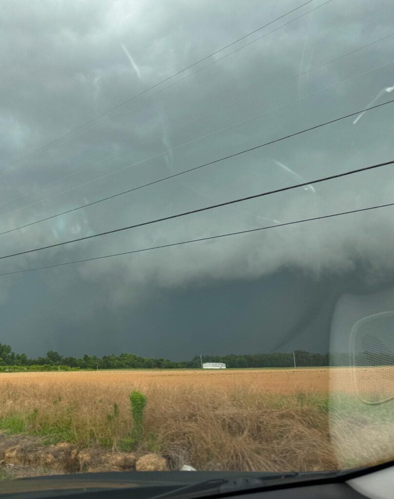 You’ll need to watch the video above to get the full story, but essentially Matt posted a viewer-submitted severe weather photo to Facebook and, in his analysis, made two claims. Namely, the “dark gray funnel shape” is: